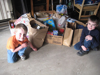 We have wanted to start a tradition of family service and so this week we decided to do a little food drive for the local food bank. Today the boys and I went to pick up all the food and they collected quite a bit! And I think the boys felt good knowing they were serving. But the greatest thing about today was the woman we collected from who has very little herself who gave two whole grocery bags full of food-the most of anyone we collected from. She explained to me that even though she doesn’t have much, she knows what it’s like to have less and she wants to give if she can at all give. What an amazing hands on lesson and example for my boys of the Widow and her mite. I told them the story and Mr. President was of course baffled by her giving so much when it just didn’t make sense to him logically. In his little mind it was crazy that she would do that. But I’m so grateful they got the chance to see that! I hope they never forget it.