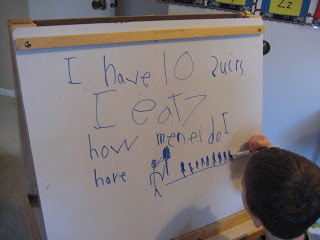 The boys love to cuddle with me in the morning upstairs in my bed and we haven’t had as many chances to do that since Pres. started school. But today I managed to cuddle with the boys by combining cuddle time with story time and we had a cozy time upstairs in my bed reading Farmer Boy. We learned all about the hard work it takes to make sugar and plant potatoes. I got to point out what a hard worker Almanzo Wilder was at the young age of 9. “Can you believe that Almanzo was harrowing whole fields all by himself?” “Did you notice that his dad didn’t have to stand over him and keep him on task?” “Isn’t that great?!” Gotta love those great literary examples!
