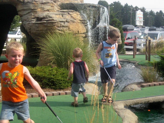 -Miniature Golf, (for best results use 3 little boys with golf clubs AND balls to hit)