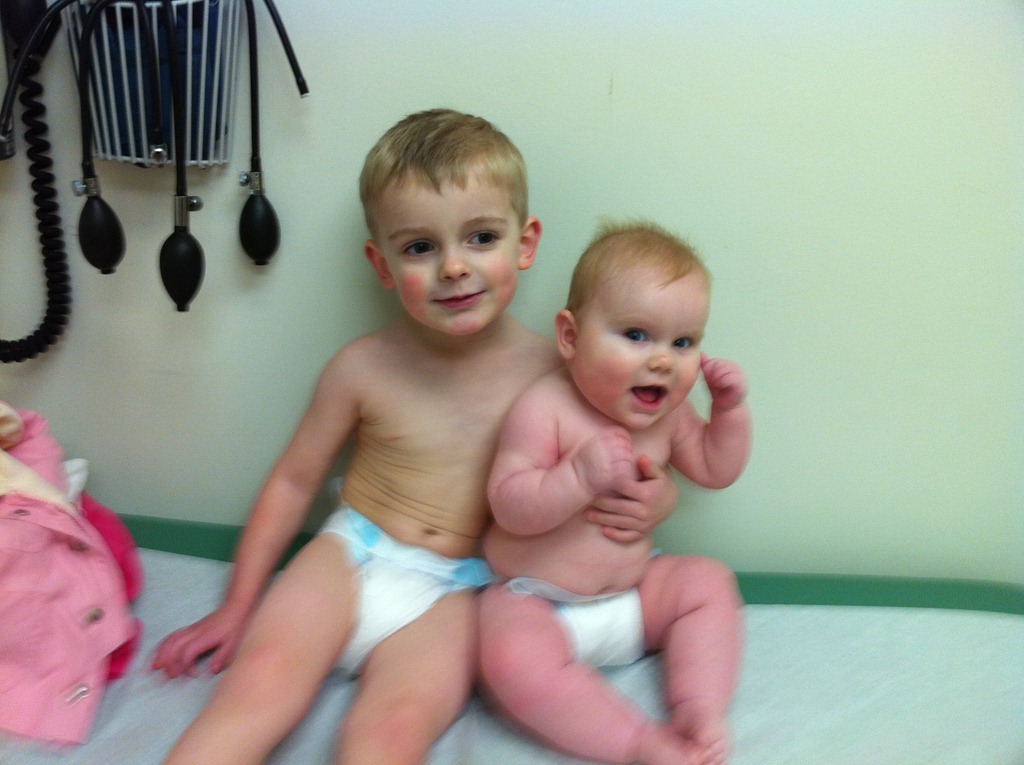 Blue Jeans and Ladybug had their 3 year and 6 month checkups. Ladybug is in the 90th percentile for her weight… no surprises there! And Blue Jeans is, though not nearly as chubby, very healthy.