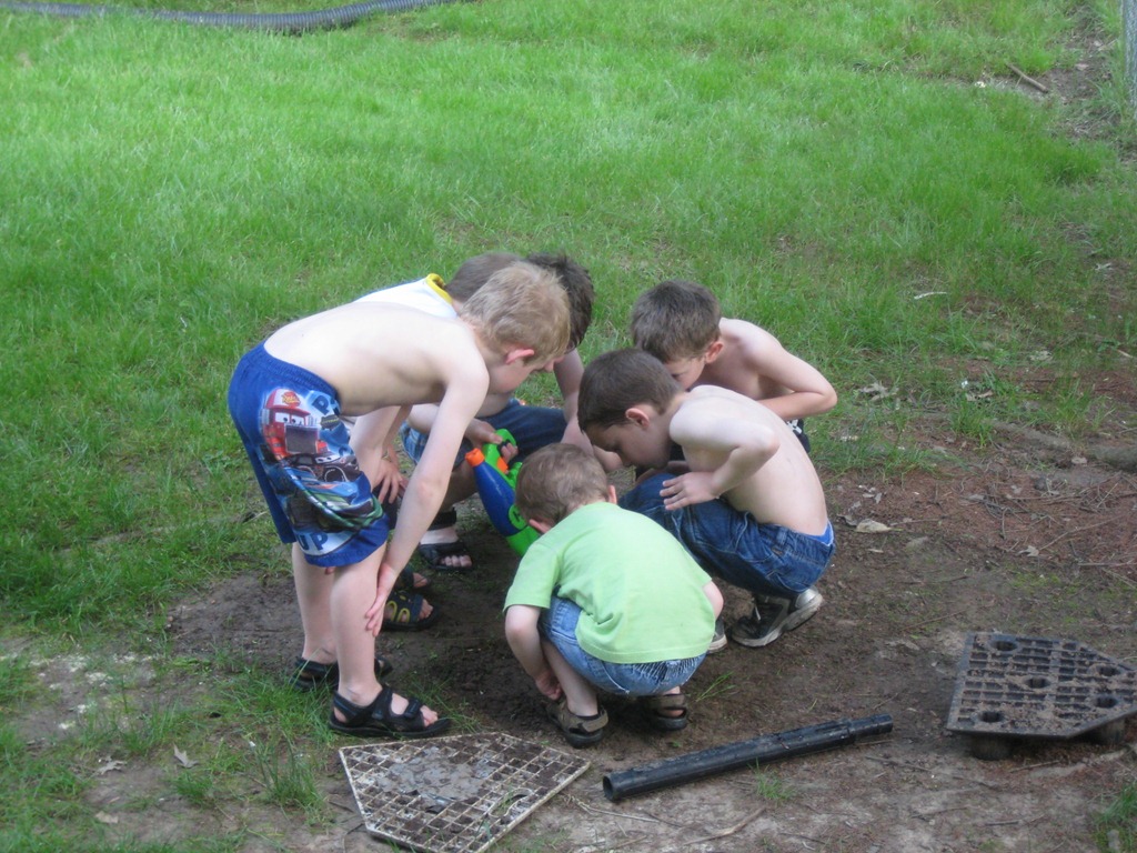 Here are 6! Count them, SIX little boys inspecting a bug they found. They inspected for at least 15 minutes.