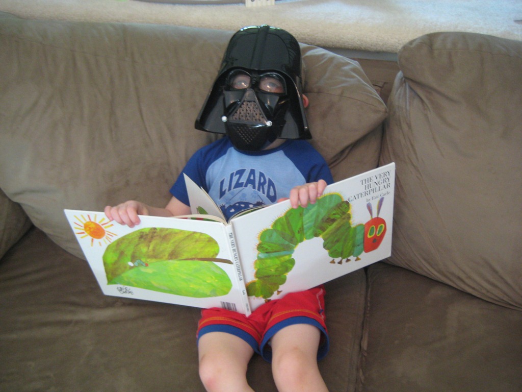 But on a happier note, I must brag for a minute about the chance I had the same day to read “The Very Hungry Caterpillar” to none other than…. Darth Vader.
