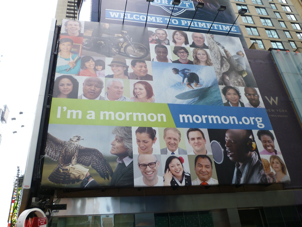 Huge billboard the church has put up in Times Square to balance the Book of Mormon musical publicity.