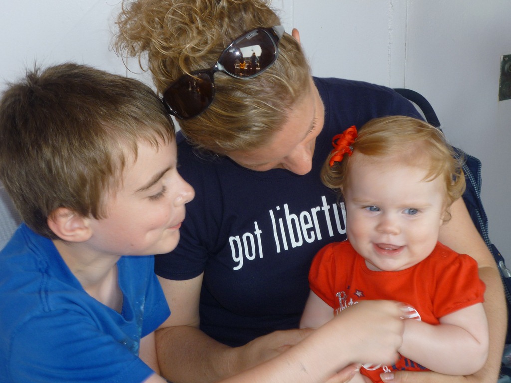 Chicago was a mess once we finally landed. All the gates were switched around and the departure times delayed so we sat all four kids down on the floor in front of McDonald’s to feed them a quick lunch. One of them (they still won’t admit who) stuck gum on the glass of the moving walkway, while the others rubbed their greasy fingers all over the glass and the hand rest of the walkway before I could stop them. My apologies go out to all the Chicago airport travelers that day for our little germ fest and to the employee who got to clean up after us. Turns out we very nearly missed our plane due to all the confusion, but it was my lucky day and we managed to get on our plane just in time. It is written in the great book of Mothering that all mothers must have an airport/airplane horror story. So far, I’ve managed to escape such a fate, but I can’t see that lasting forever with my little brood. When it does happen, though, I’m sure it will make for a great blog post.