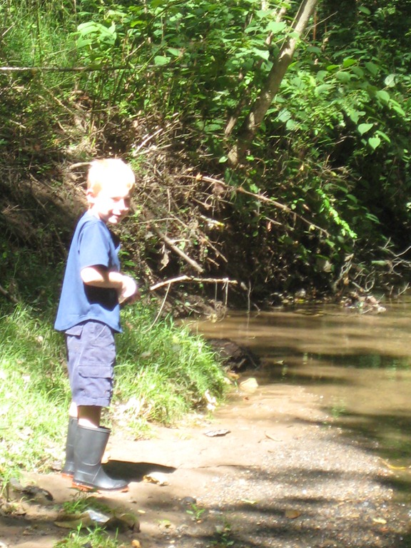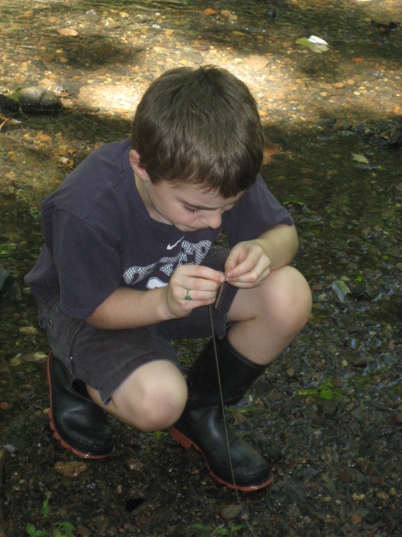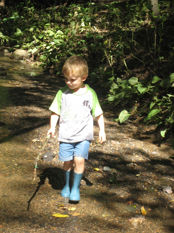 I chose to ignore my irrational fears that someone would stop us and demand to know why my children were fishing (FISHING!) instead of sitting in a classroom somewhere or that Child Protective Services would show up and haul me away. It’s striking how strong societal norms and the need for conformity really are. I’m told it gets easier with time, this being a rebel. And we had a great time! We hardly saw any fish and none were caught, but we saw some great animal tracks and bugs galore and Levi had a blast running through the creek in his galoshes. It was the PERFECT thing for little boys to do. They wandered all over the creek, climbed the banks, looked at rocks and bugs and it was just wonderfully NATURAL! And as people walked past us on the path I just smiled, looked them in the eye and said, “Hello!”