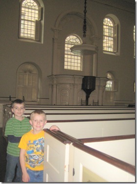 Our last stop was the Old North Church where hung the famous Two Lanterns. “One if by land, two if by sea.” This was another place I’ve longed to see all my life. Right there in that top window sat the two lanterns! That’s just so cool!
