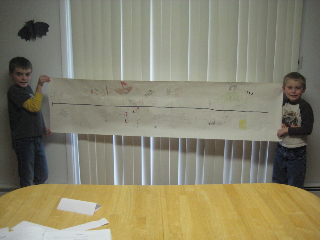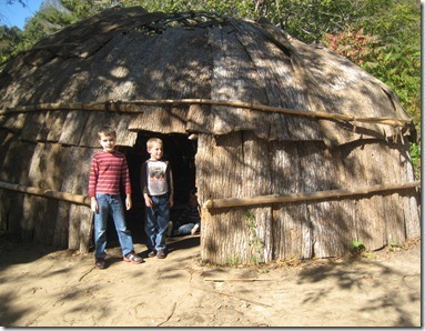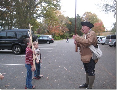 The boys LOVED the thought of the colonists dressing up as Indians here.