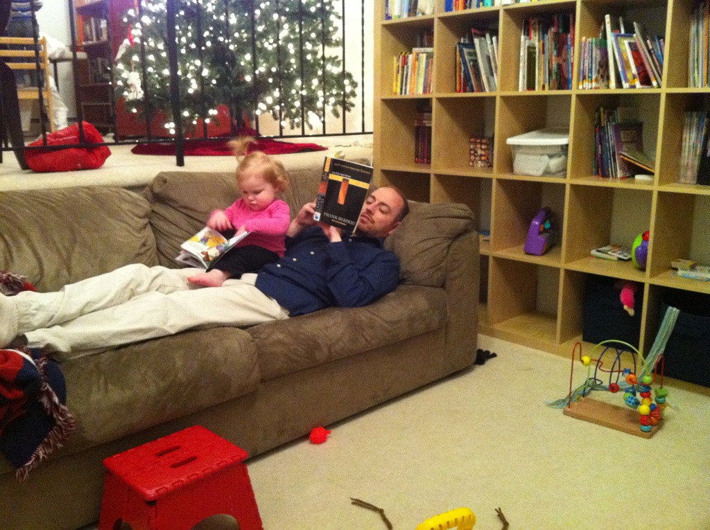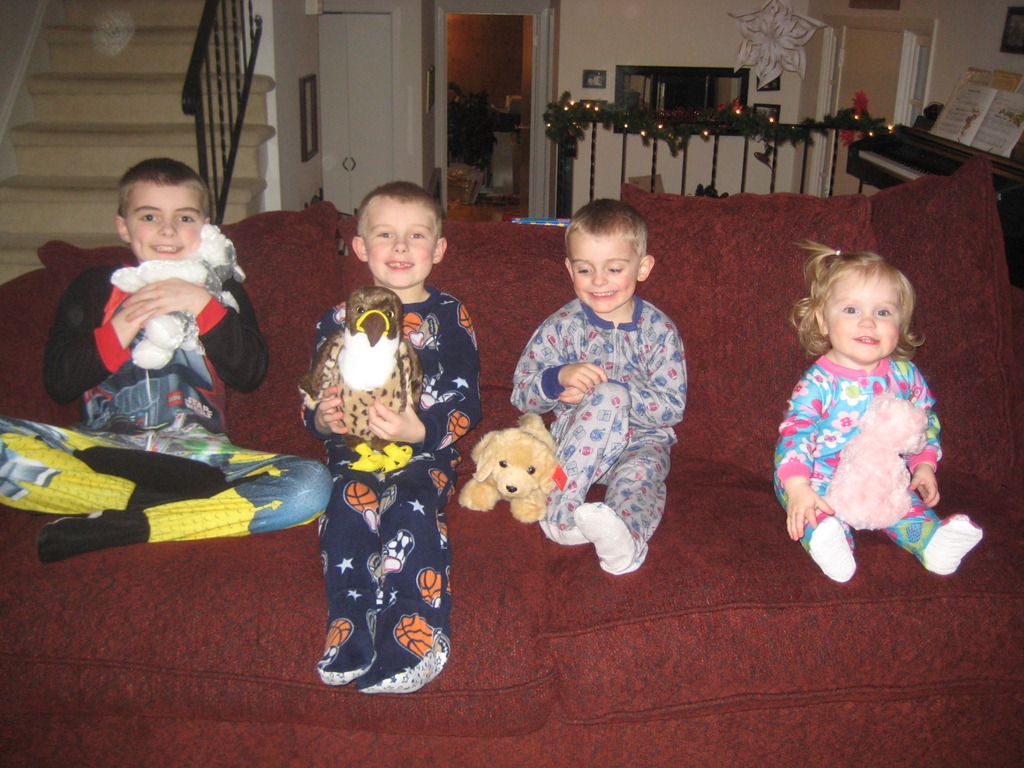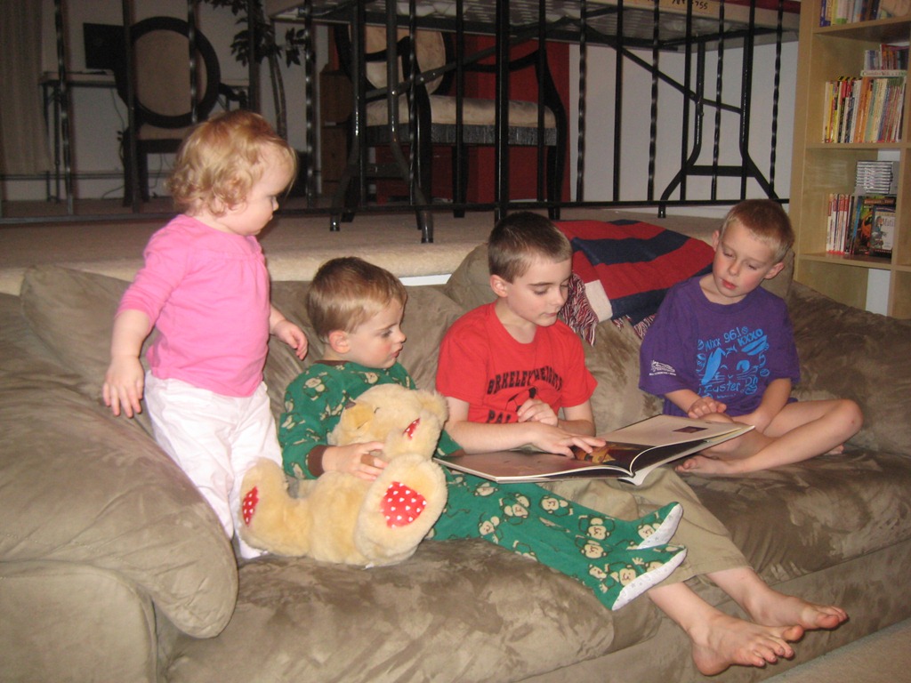 I put the little ones to bed while Rock does math. Then the boys read till bedtime. They cannot get enough reading. Every second they get, they are reading. They’ve been caught many times reading by nightlight lately. I can’t even get mad at them because I used to do the same thing. I loved December because I could open my blinds and read by Christmas lights!