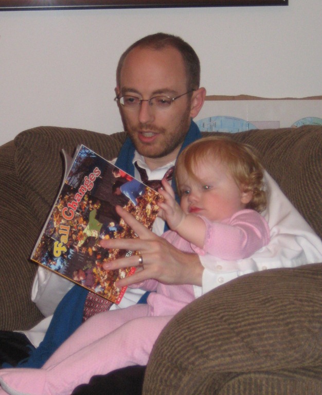 After breakfast they do their morning chores, get dressed and the older boys read their scriptures for 5 minutes. When I’m on the ball, I read to Levi from the Book of Mormon Reader, but today I’m not on the ball so he gets to play while I get Liberty up and get her breakfast. While she eats cheerios, the boys and I do the calendar and say the Pledge of Allegiance.