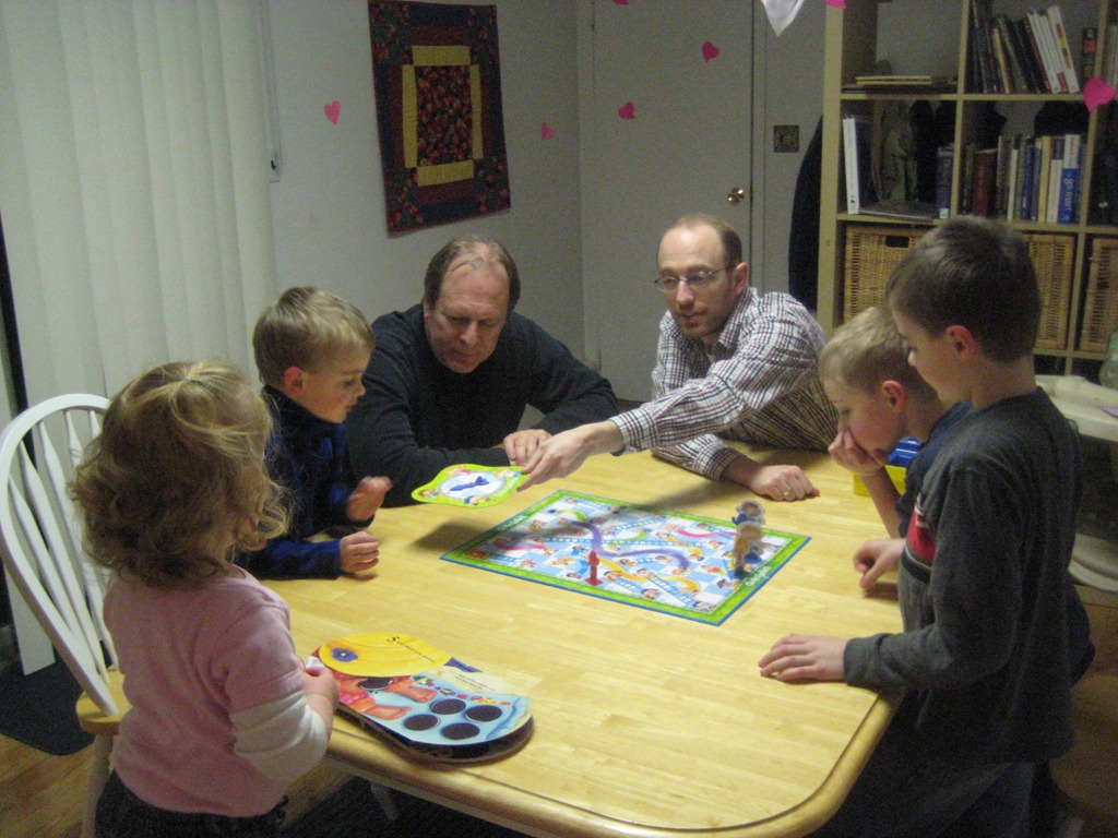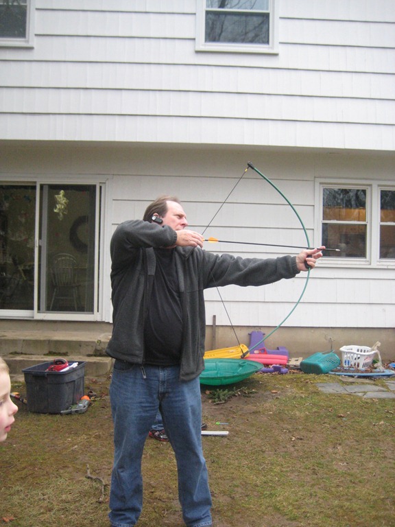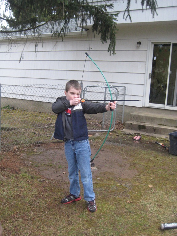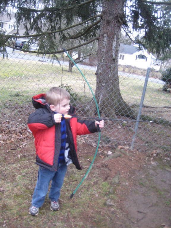 By this time our fingers were frozen and the boys couldn’t hold the bow anymore, so we went in and played a good rousing game of Chutes and Ladders and Candyland with the kids.