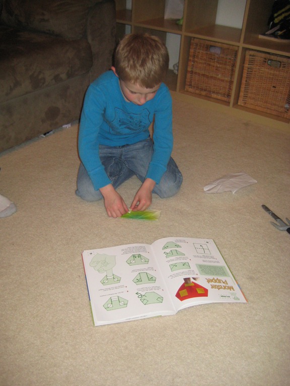 This week we’ve been learning about China and Japan in the middle ages. The boys have been doing Origami all week and I learned something about myself. I cannot STAND origami. “You want me to fold it how and then where and then what?????!!” I am just not spatial enough, apparently. I gave up after hopelessly trying to make Levi a fox. Cade, on the other hand was willing to spend hours trying and retrying the folds and he was great at it!