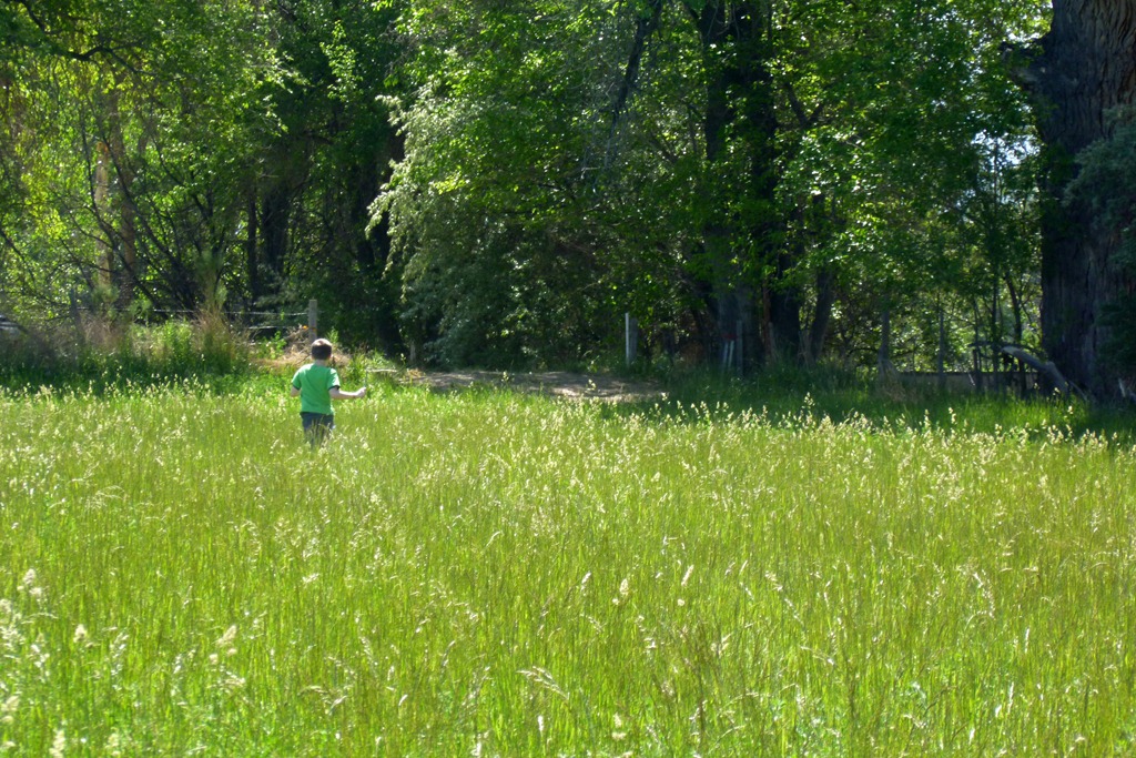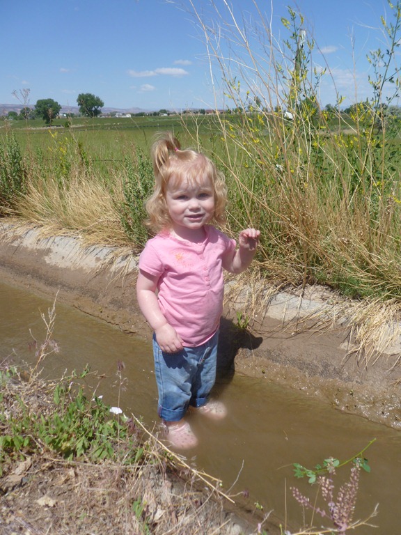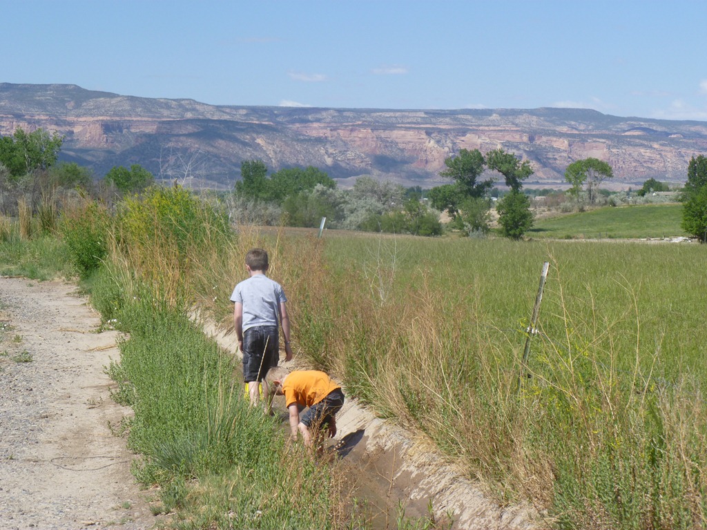 Then everyone played in the irrigation ditch. They raced boats up and down the water.