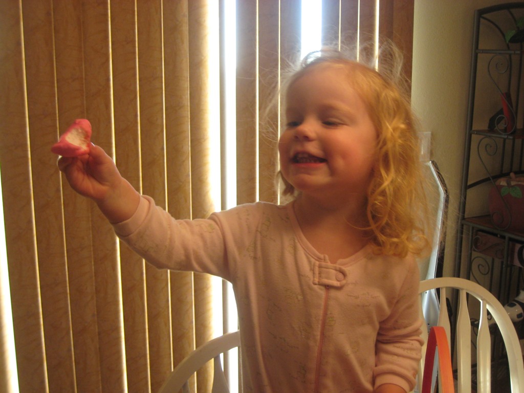 Then, on the last night my parents were here, Grandma was helping Liberty say her prayers. Now, you have to understand before I continue, that whenever my mom is visiting with her grandchildren she has a bag of Mother’s pink and white animal cookies on hand. And Liberty, of course, is a big fan of those cookies and enjoyed eating them all week. Now back to the prayer. Grandma tried to help her get started and thank Heavenly Father for her family, but Liberty would have none of that. Instead she said, “I thank thee for the cookies.” When Grandma tried to get her to ask for a good night’s rest, Liberty said, “Please bless the cookies.” And when Grandma tried to get Liberty to thank Heavenly Father for Jesus, she said, “Please bless us to have more cookies, in the name of Jesus Christ, Amen.