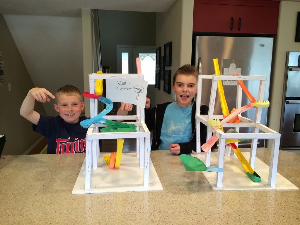 Tuesday the older boys went over to a friend’s house to make these awesome paper Marble Runs.