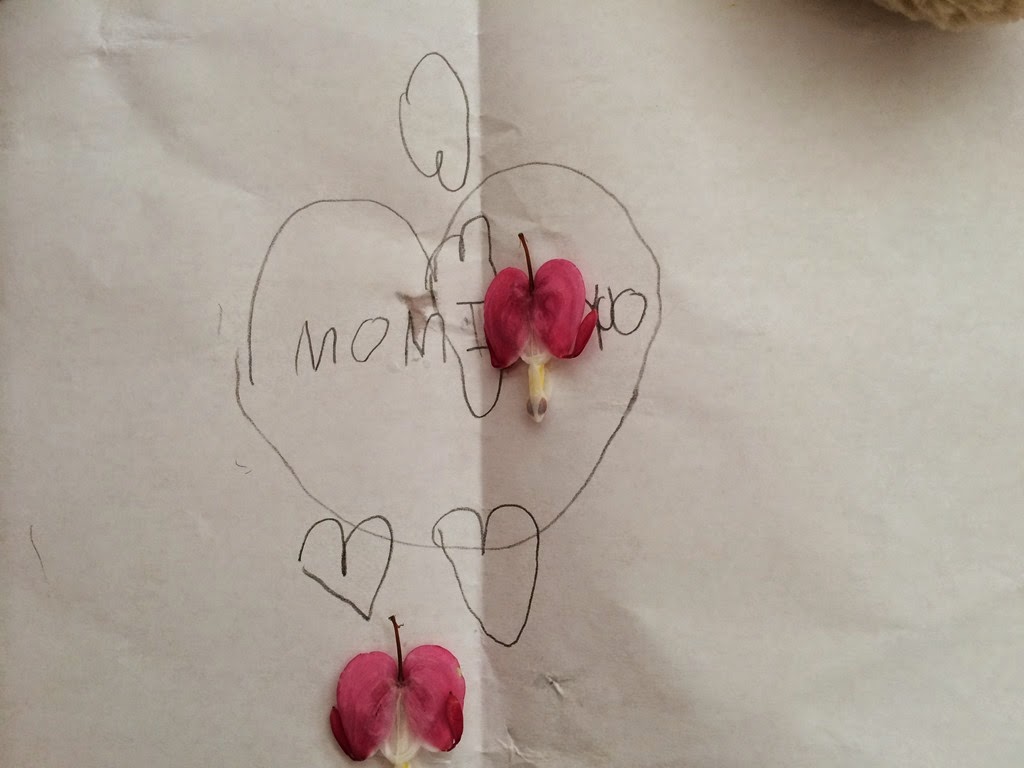 Those flowers happen to resemble a heart and so Levi got creative with his card: