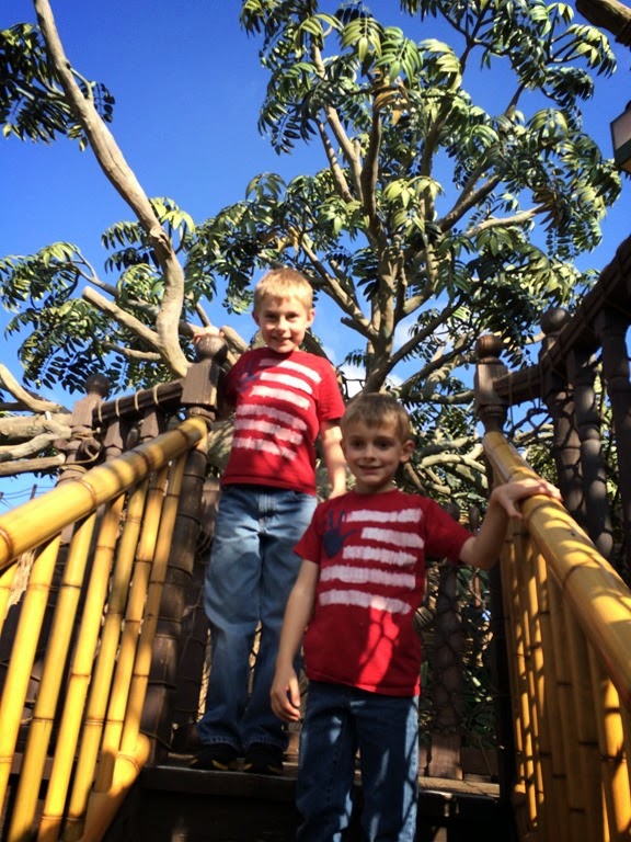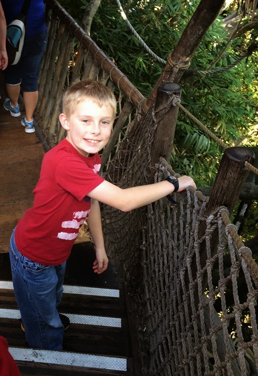 One of the neatest things at the park was the Wilderness Explorer playground. It was a huge, kid size ropes course/log jungle gym in the middle of a forest. Levi wanted to go back several times. This zip line was pretty fun.