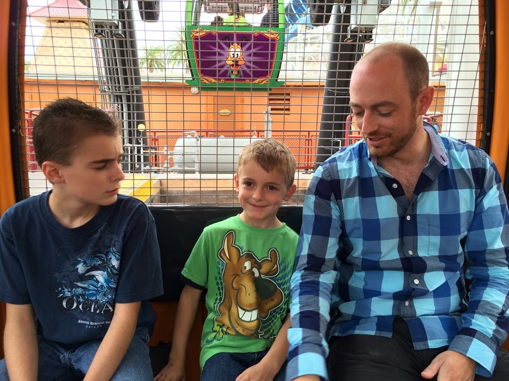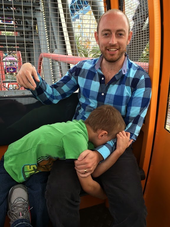 I hate Ferris wheels; the regular, hardly move at all, Ferris wheels. This was the Ferris wheel to beat all Ferris Wheels. It is huge, and the cars rock and slide all over. I didn’t know that when I agreed reluctantly to go on it “as a family”. If you look closely, you’ll notice my foot there in the picture. I was bracing myself because there was nothing to hold onto and I wanted to throw up. Even Levi, who went on almost all the big rides, couldn’t handle this one. I breathed a sigh of relief when we finally got back to the bottom, only to be swung up and around a second time! Rock, Liberty and Cade had a blast. Cade grinned from ear to ear and kept saying, “This is the coolest ride ever!!” while the rest of us wanted to hurl and couldn’t even open our eyes. I’m pretty sure I will never go on a Ferris wheel again. That was enough for a lifetime.