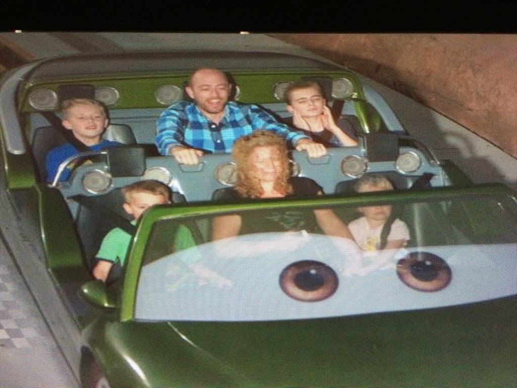 Everyone loved zooming around the red rock hills and seeing all the characters from Cars. Well, everyone but Liberty. This was the picture from the one drop on the ride.