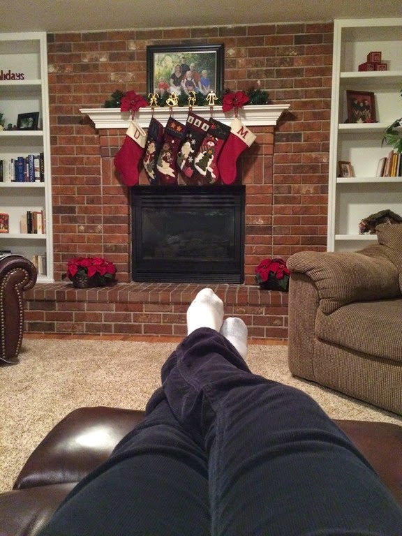 The whole process of getting a real tree was way more work than I remember.  But as I was standing their covered in sap and pine needles, holding the tree upright while Rock adjusted, then cut, then readjusted the tree to get it straight, I was suddenly transported back in time to the home of my youth.  The beautiful smell of the tree alone was enough to transport me back, but having to do the same thing my mother did for years brought back so many memories!