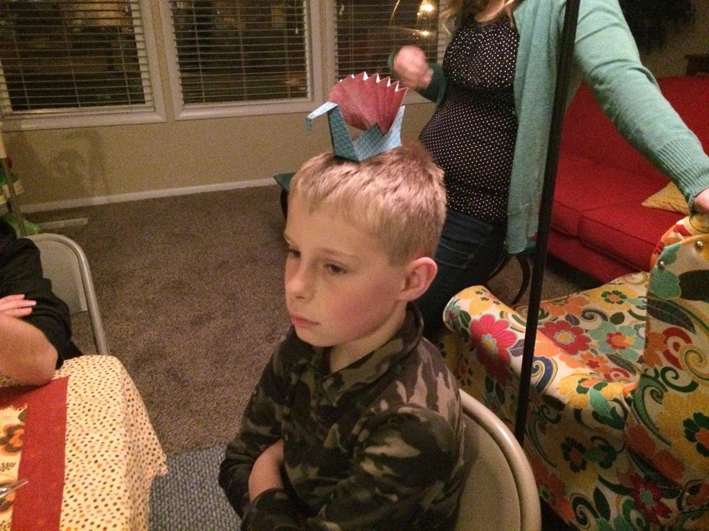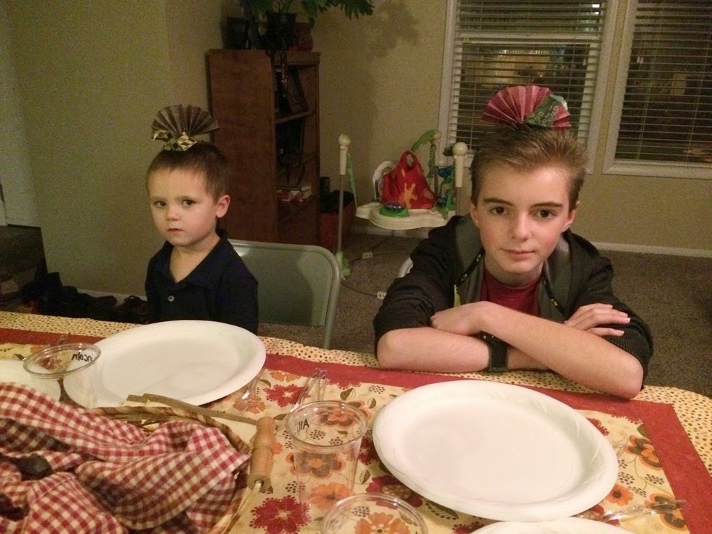 Uncle Calvin likes to sit at the kid table… can you guess why?  Apparently the initiation for sitting at the kid table was putting a paper turkey on your head.  And seeing how long you could not smile.