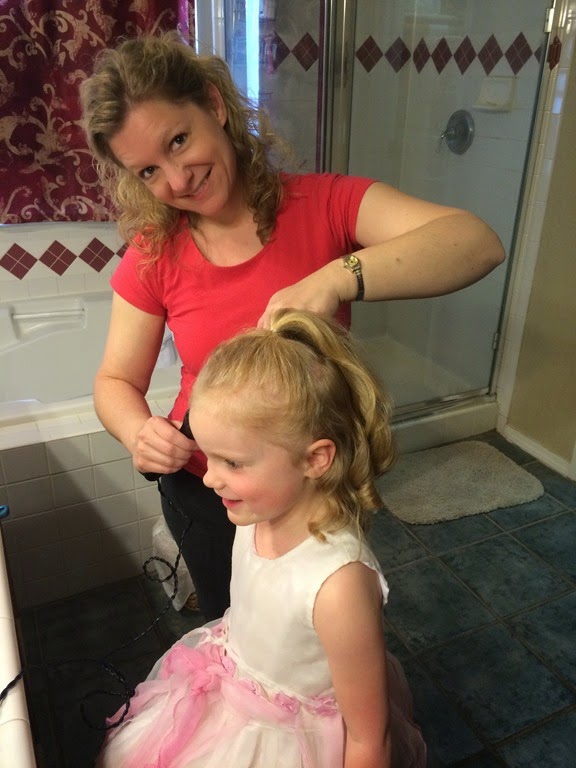 “I wanna wear a dress and do my hair!” (said in a whiny voice). This is what my roommates and I would say in college when one of us got to go to a dance but the rest didn’t. Getting ready for a dance or even getting someone else ready is one of those rites of passage for us girls. Last week I finally got to curl Liberty’s hair and get her all dolled up! This was a dream come true. I know, using a curling iron is not usually what you would consider big time dreams, but it was for me! And getting to wear lipstick and blush was a big dream come true for my little dancer too!![]()