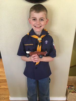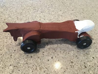 Levi was in his first Pinewood Derby this month. Like his brothers before him he made his first car into his favorite animal, the fox. Meet “Fast Fox”.
