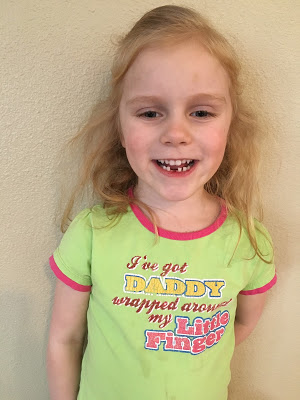 And not to be out done by her brothers, Liberty lost her first tooth a few weeks ago, beating all her brothers for youngest tooth loser.
