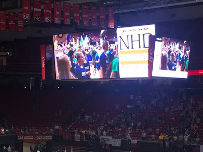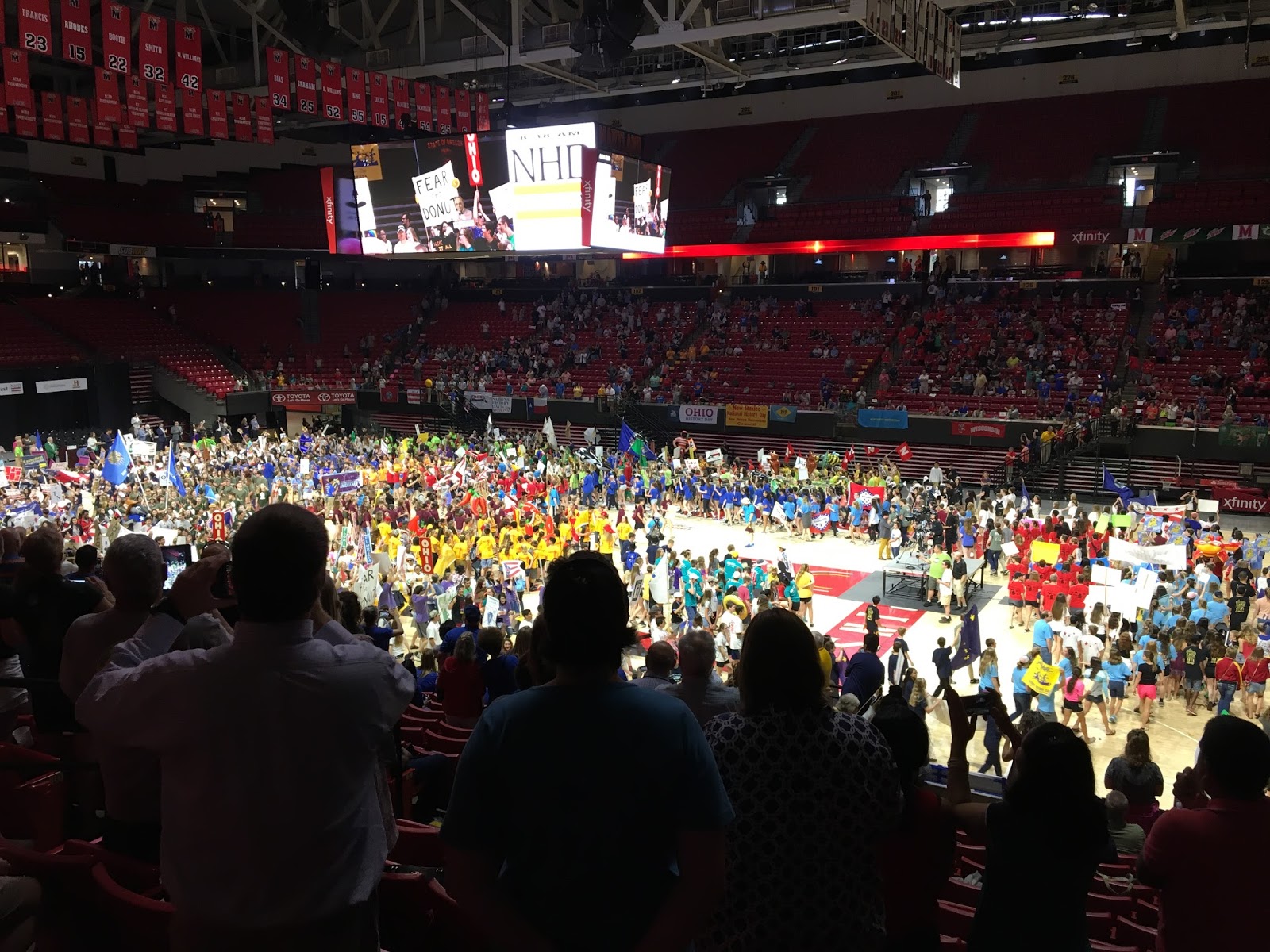 On our last day in D.C. we went to the National History Day Award Ceremony. This was THREE HOURS LONG! But seeing as how I’d missed the first two award ceremonies here in Idaho, I suffered through this one in silence. Idaho didn’t win any awards, but it was exciting and tense for the boys to wait and hope. They all handled the loss very gracefully. And were thrilled to have just gotten the chance to compete. The highlight of the award ceremony was the parade at the beginning where all the kids marched around the floor of the auditorium. Cade was even on the jumbotron!