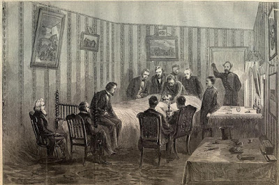 Across the street is the Peterson House where Lincoln actually died. This is said to be the most accurate drawing of that night.