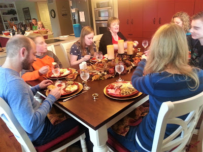 This year, thanks to a sick Libby we had just my parents, my sisters and us. I planned it just right so I only had to worry about the turkey at the last minute. I did not follow tip #4, unfortunately and when it came time to get the turkey ready, I realized it was partially frozen. Sigh. But it only bumped us back an hour and our turkey was cruisin along ready to be done in 2.5-3 hours. At 2 hours I checked it in 5 different places and the temperature was 10 degrees higher than was recommended for a done turkey. Gasp! I texted our few guests, “The turkey is done early and you better get over here pronto!” and we scrambled to get the table set and the last few things done. They rushed to get everything finished, arriving shortly thereafter and we proceeded to cut the turkey. When Rock kept running into bone and couldn’t find the meat we realized that we’d put the turkey in upside down and that it was not, in fact, cooked yet. Yes, we are turkey challenged. Thank goodness for the microwave! Our turkey was perfectly moist and miraculously tasted great despite our ineptitude. Alli put it perfectly when she said, “This was the easiest Thanksgiving dinner ever. You didn’t even have to cook the turkey!”