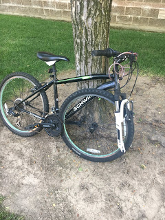 She then went on to explain that he’d been riding to Target (to get cups for his lemonade stand) when his bike tire came off and he flew off his bike onto his chin.