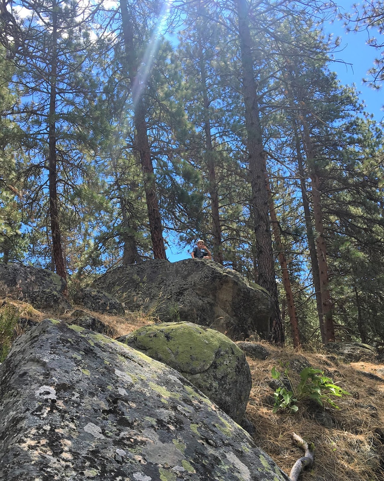 All in all, he was pretty lucky. No broken bones and he will now have a scar on his chin just like everyone else in the world. Based on what I’m seeing it will be a pretty gnarly scar, which boys find cool and mothers do not. But I’m grateful he’s ok. He’s up at scout camp this week and Rock and I had to interrupt our getaway at Tamarack to take him to the doctor in McCall to have his stitches removed. Kind of annoying, but, actually rather convenient that we were up there so close to him already. And I got to take a picture of both my boys up at scout camp together.
