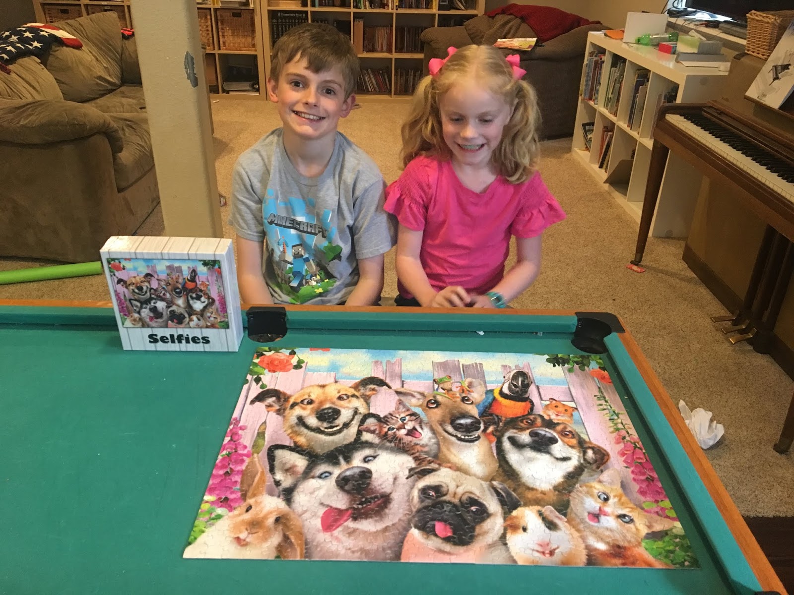 Levi and Liberty finished a puzzle together. It started as a fight and ended as a win.