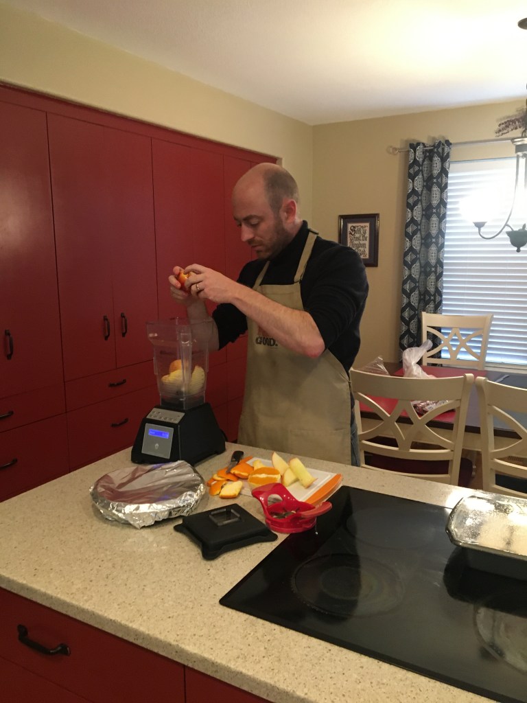 Making his famous cranberry sauce Headed to the Turkey Bowl