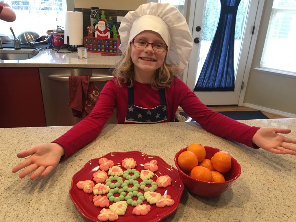 This is only one kind of cookie we made that day. By the time we were done we had made gingersnap cookies, almond bark cookies, peppermint bark, and chocolate dipped pretzels.