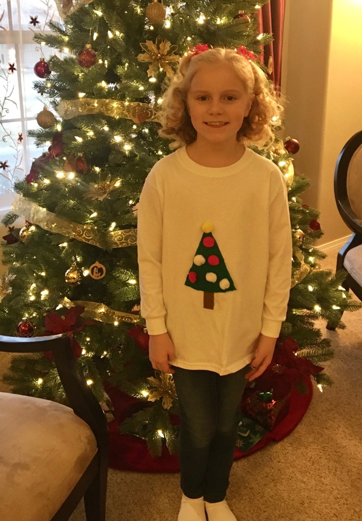 Liberty’s school had a Christmas sweater day and since I am too cheap to buy her a Christmas sweater she made herself one.