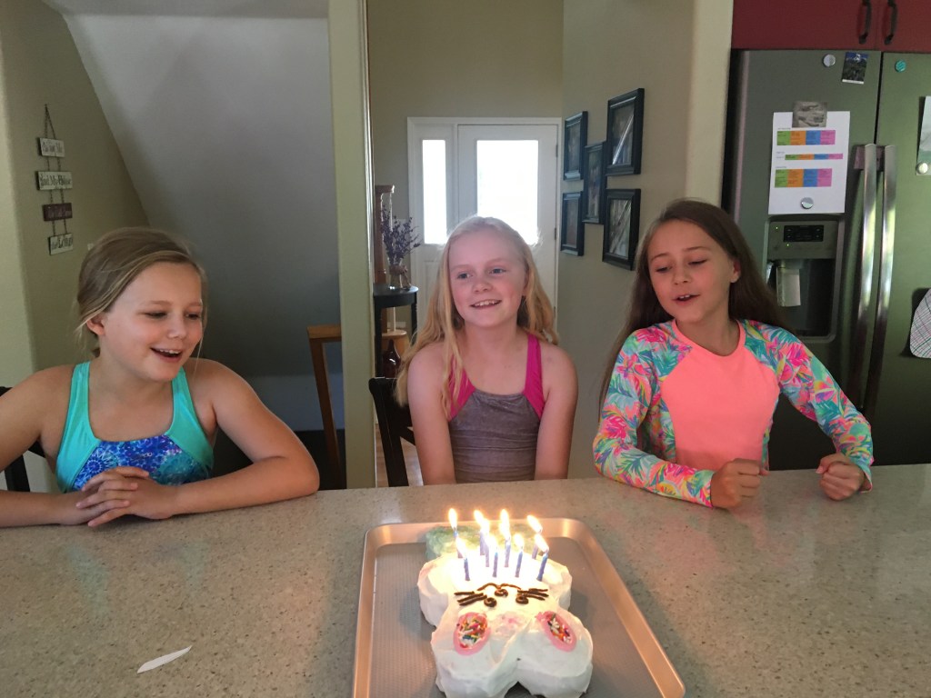 We kept Libby’s party small this year figuring many parents wouldn’t be ok with a big party invite. She was dying to have a pool party but with no pools open, she had to settle for a water party in the back yard. She managed to come up with a fun theme anyway. Water + Bunnies = A Merbunny party.