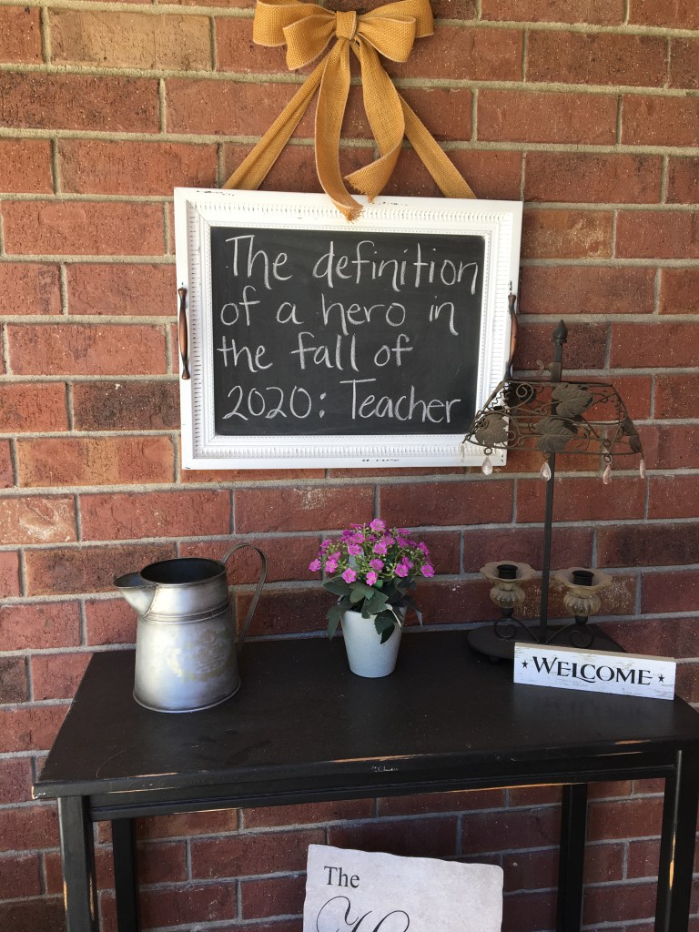 I am totally in awe of what these teachers this year are having to do. They are working double and triple over time, need personal secretaries to handle all the paperwork and logistics of every other day school and many feel they are putting themselves at personal risk to teach. So, here is my front porch sign dedicated to all the teachers of 2020. We love you and are so grateful for you!