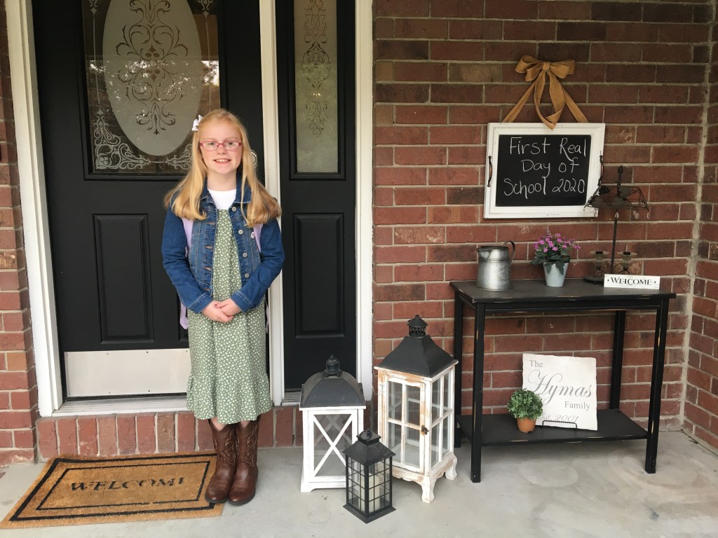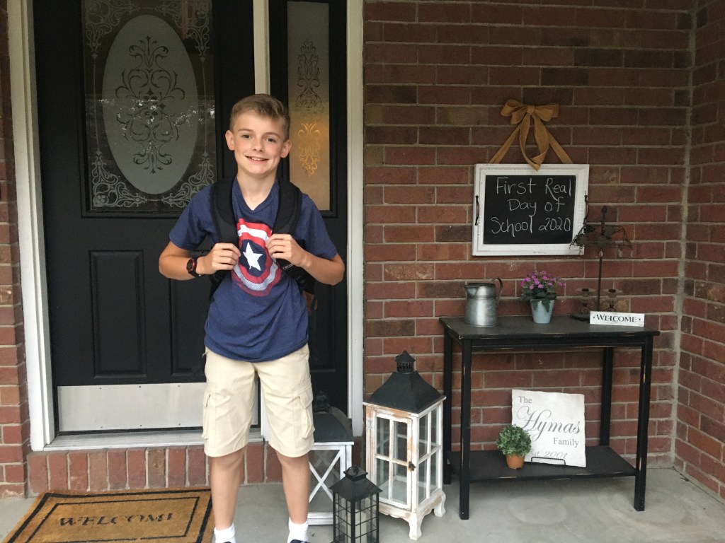The kids decided they wanted to try doing public school this year even with all the crazy, so that’s what we decided to try. Technically the kids started school on September 7th-remotely. But we are counting the first day of school this year as the following Monday when they got to start in-person. They are going every other day right now which they hate, but I kind of like. My dream school was always to homeschool them for half the week and send them to school for half the week. But that didn’t exist-before Covid, anyway. Now I’m getting it a little bit. I do “Mom school” with them after they are done with their official school work and teach them stuff I want to teach them. They would rather be going in-person every day because the every other day thing is confusing and cumbersome. Half the days they don’t have much work and half the time they can’t get answers to their questions because teachers are busy teaching the other half of their students. The whole thing is ridiculous and we are all ready for every day, but I am cherishing this time with them every other day. So here are the first day pics.