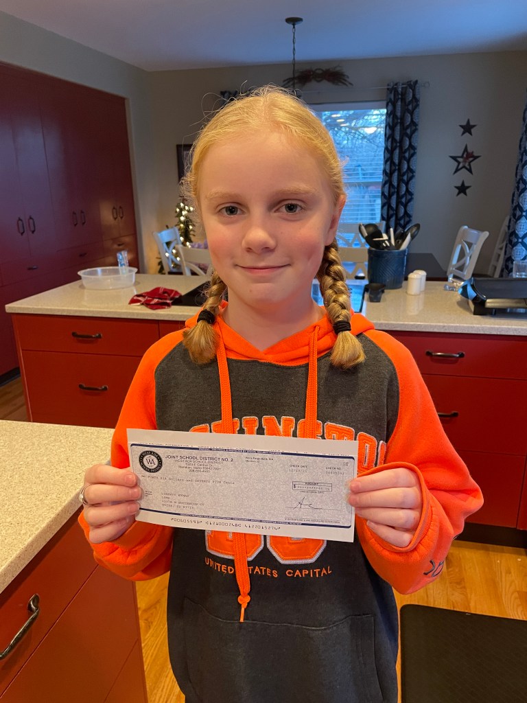 Libby got her first job working as a lunch helper at school. In December she got her first paycheck!