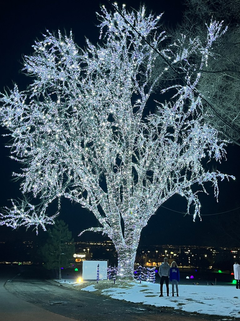 We took the younger two down to see Cade perform in the BYU Christmas concert this last weekend. On the drive down we stopped to get dinner in Sandy and saw this beautiful tree!!