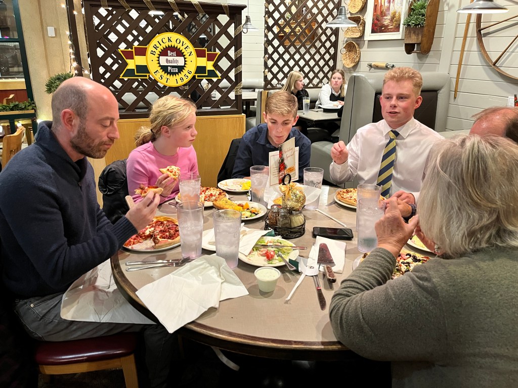 Before the concert we went to dinner at the Brick Oven for another trip down memory lane where Rock told the kids about the time we went on a double date there together but not with each other. Ironically enough, we went to the HFAC that night too to look at an art exhibit.