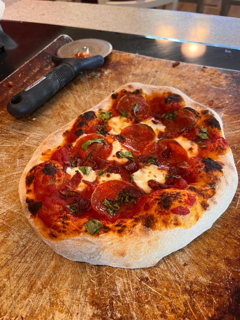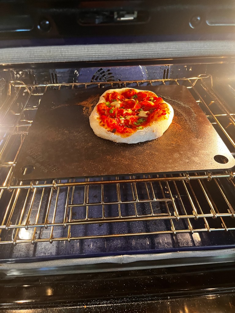 Rock has been cooking a big fancy dinner once a month this year and has found he enjoys cooking quite a bit. He bought this pizza steel that gets your oven as hot as a pizza oven so we can have brick oven pizza without the brick oven.