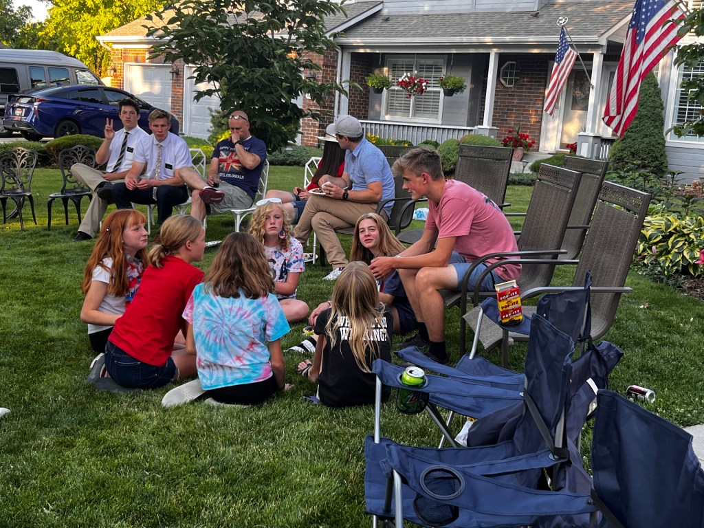 We had my family over for lunch that day and enjoyed some good water balloon fights and cornhole! Then we ate dinner potluck style with our cul-de-sac. Levi was quite the chick magnet that night.