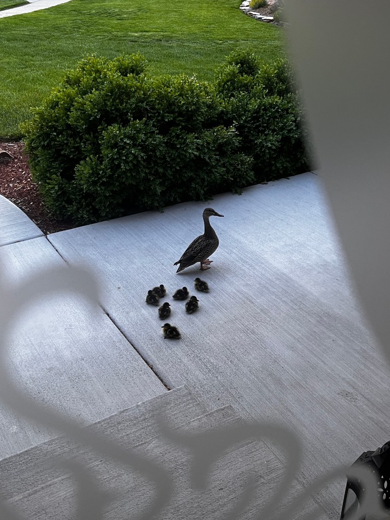 We looked out our front door a few weeks ago on a warm afternoon and found this cute little family taking a break on our warm cement porch.