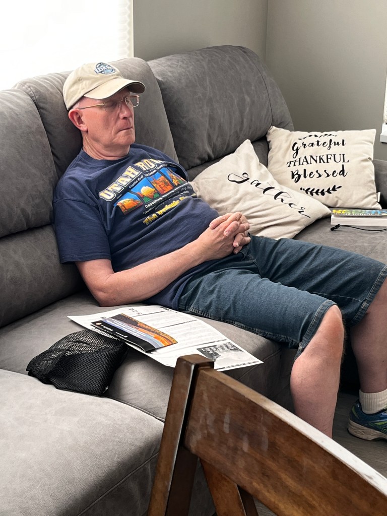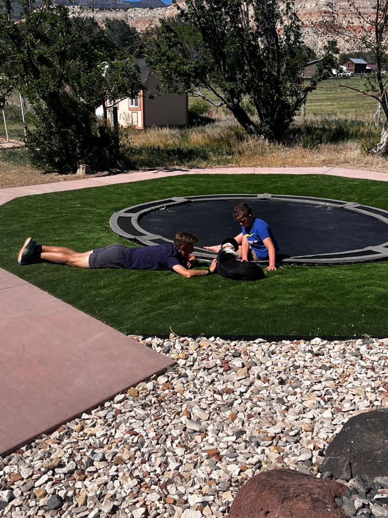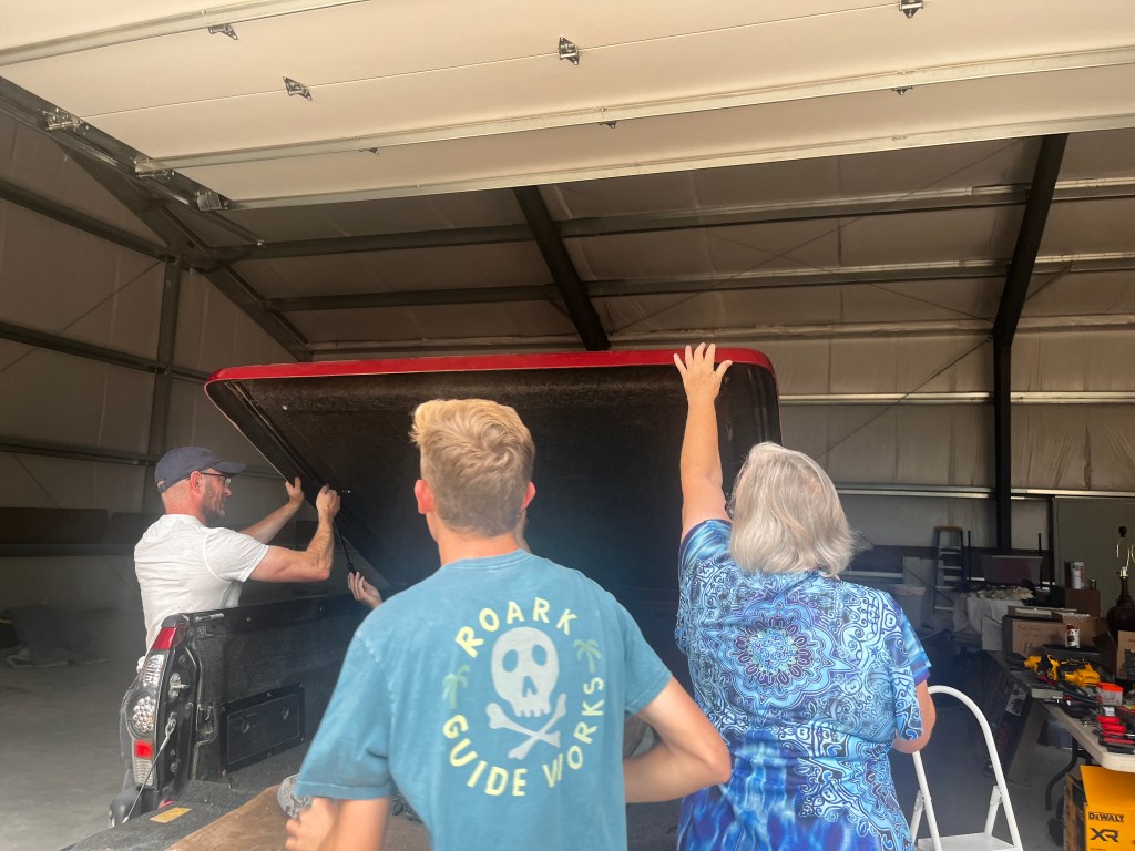 Because they are living in a tiny trailer, the tables were a little flipped this time and we had them over to our airbnb for dinner. The next day we hoped to play around and explore on their property, but we got rained out! Grand Junction had rain like crazy while we were there. We did manage to help Grandpa with his truck bed lid before it started raining though.