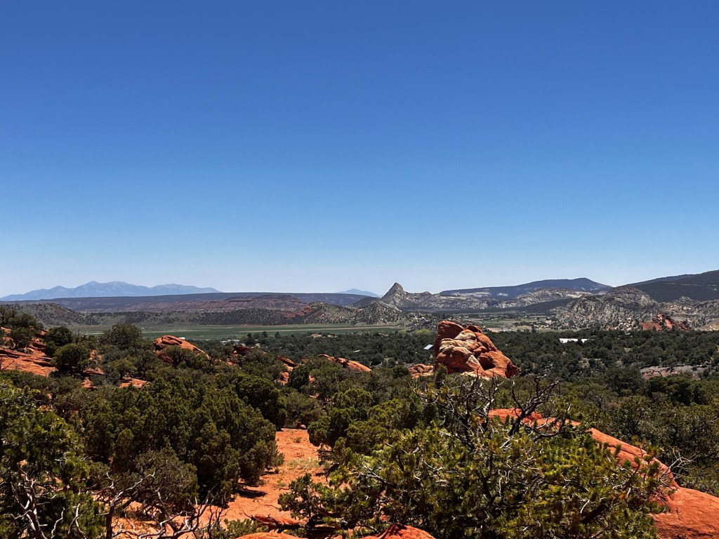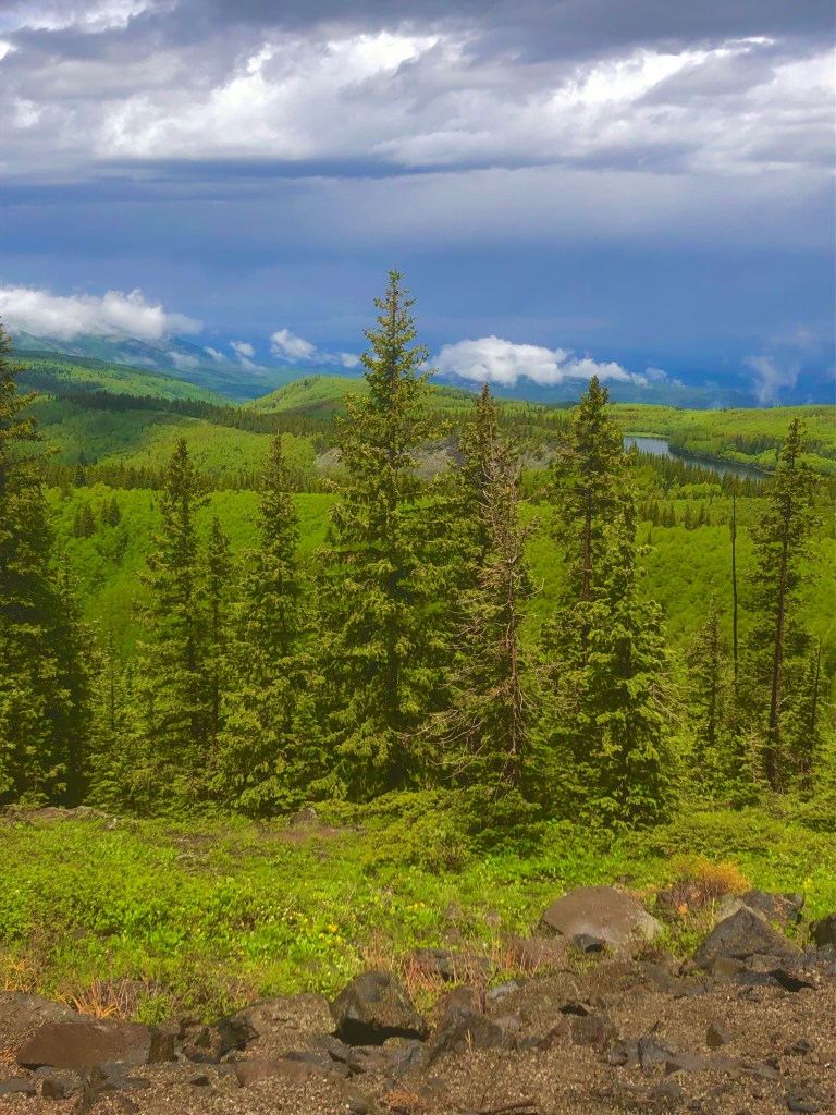 The next day for Grandpa’s birthday we decided to brave the rain, hope for the best and head to the Mesa. After eating at our new favorite restaurant in GJ, Starvin Arvin’s for breakfast, we drove through rain, sleet, hail, and fog to get to the top of the Mesa. When we finally made it, we got a little reprieve. The sun came out for about 30 minutes so we could eat some lunch at the beautiful Mesa Lakes picnic area. After the rain, the fish were jumping so much you could almost catch them with your hands. Levi and Grandpa were sad they hadn’t brought their fishing poles.