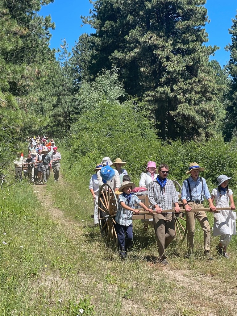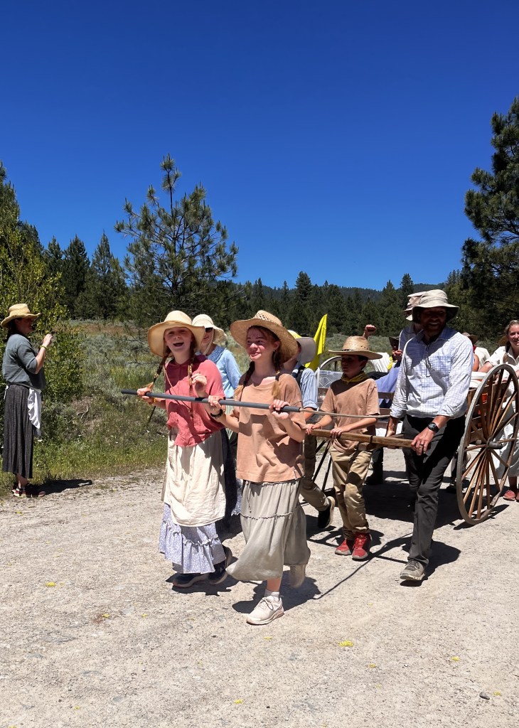 The Wednesday after we got back from Utah, the kids went on Trek. It was shorter than in past years, only 3.5 days, 2.5 days of actual trekking. The rules have gotten “shockingly” lax over the years and kids are now allowed to bring deodorant and bug spray and the girls are not required to wear bloomers and bonnets. Their first night they were supposed to sleep in tents but the property double booked them and had to put them in a big huge barn for the night instead. This turned out to be a little miracle when an afternoon thunderstorm dropped massive hail that would have destroyed their tents and gear had they not been in the barn. The next two days they pushed and pulled their handcarts up huge hills working hard together. They even had a few real service opportunities as they worked to carry a young man who had broken his leg in several places earlier in the summer and a young woman who had a rare case of eczema on her hands that gave her blisters that required constant bandage replacement. Both kids toughed it out and taught all the others some awesome lessons in perseverance. Levi and Libby had a great experience and can’t wait to do another trek. I am so grateful for all the ward members who volunteered their time to go along and help my kids do something hard and learn about the pioneers.