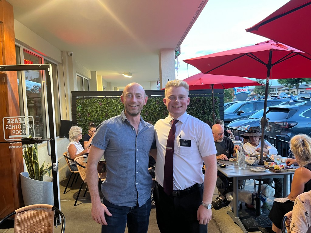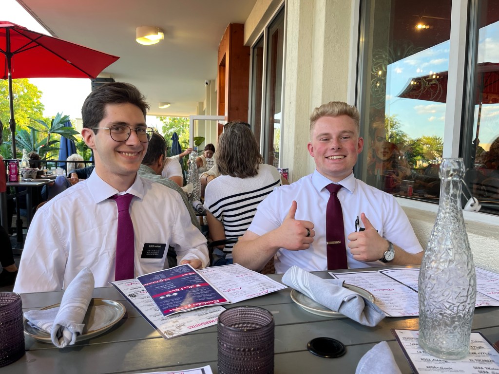 Your eyes are not playing tricks on you. Times are just changing when it comes to mission rules. Rock was in Denver on a business trip, which is about 40 minutes from where Cade is serving and now days there is some leeway on seeing your kids! He took Cade and his companion to dinner.