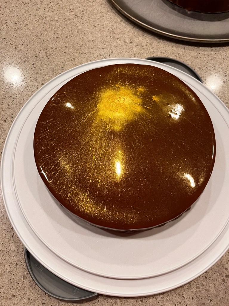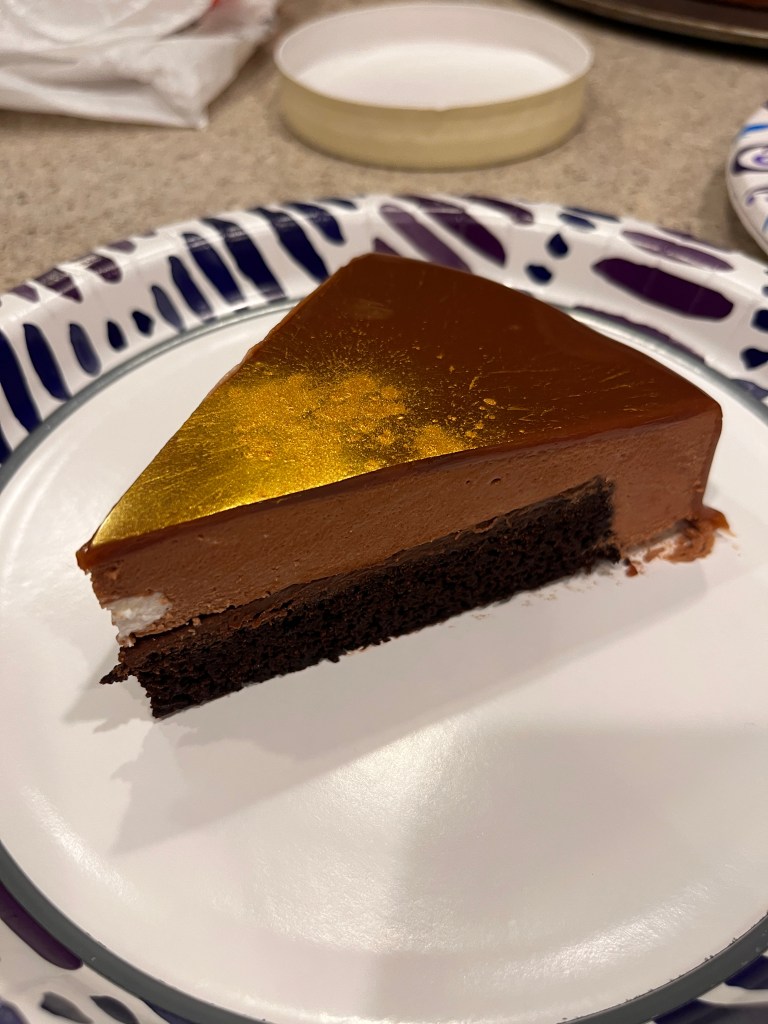 For my birthday this year Rock made a very fancy Chocolate Nutella Mirror Glaze cake with edible gold dust. It was beautiful and delicious! And he was very proud of it.